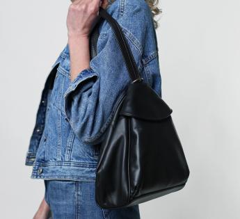 Leder-Rucksack mit Reißverschluss und einem kleinen Klappdeckel vorne. Das Design umfasst ein Hauptfach mit Reißverschluss oben. Ein weiteres Reißverschlussfach ist auf der Rückseite der Tasche hinzugefügt. Für Ihren Komfort und Ihre Bequemlichkeit sind verstellbare Hosenträger vorhanden. Um alles zu sichern, ist oben an der Tasche ein Metallring vorhanden.