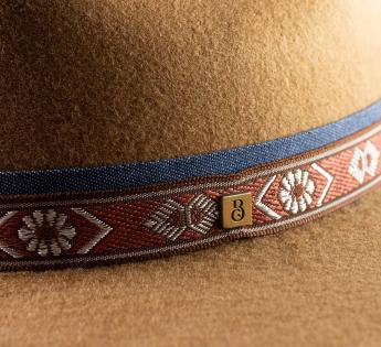 Wintermodell, das durch die Überlagerung eines Galon aus Jeans und eines anderen bestickten Galons personalisiert wurde. Das Ganze bietet einen zeitgenössischen Westernstil für einen neu interpretierten Vintage-Look.
