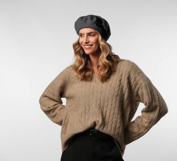 Gefertigt aus reiner Merinowolle, bietet es einen eleganten und bequemen Sitz. Das satinierte Futter kleidet das Innere mit Finesse, während jede Verarbeitung die Aufmerksamkeit für handwerkliches Geschick widerspiegelt. Ein Accessoire mit Charakter, gedacht, um sowohl die schlichtesten als auch die gewagtesten Stile zu veredeln.