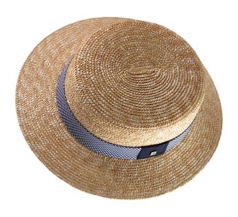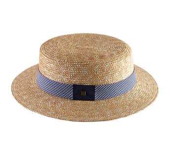 Boater Kreissäge aus feinem, in Italien geflochtenem Stroh. Das Modell wurde in Frankreich in unserer Werkstatt in Lyon entworfen und hergestellt. Der Galon besteht zudem aus einem Stoff mit kariertem Vichy-Muster.