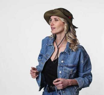 Der Hut, natürlich lässig, bietet vollständigen Schutz. Von den Augen bis zum Nacken hält er warm und trocken bei jedem Ausflug.