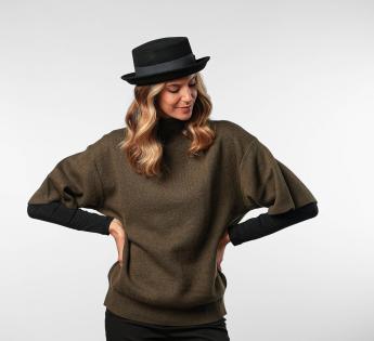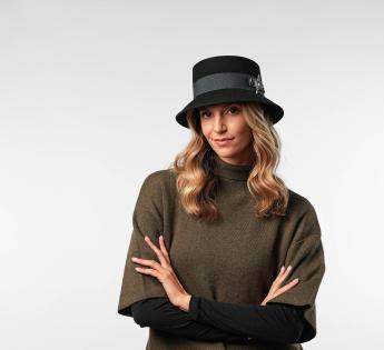 Er kann auf verschiedene Arten getragen werden: mit herunterhängender Krempe für einen schlichten Stil oder mit Krempe erhoben für einen gewagteren Look. Unisex und vielseitig, passt dieser Hut sowohl zu einer weiblichen als auch männlichen Garderobe. Ideal für diejenigen, die eine markante Kopfbedeckung suchen, die sowohl elegant als auch entschieden modern ist.
