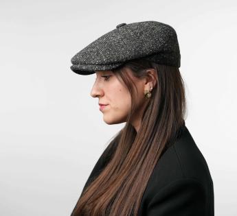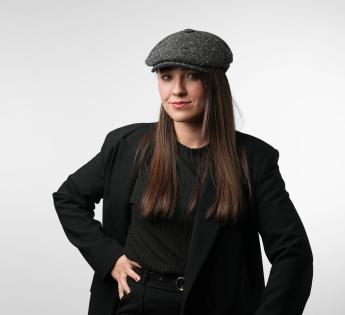 Irische Kappe, mit einer eleganten Lässigkeit, ist ihre Form großzügig, ohne zu weit zu sein. Man kann sie sowohl gerade als auch leicht schräg auf einer Seite tragen. Sie ist aus einem traditionellen Stoff mit Fischgrätmuster gefertigt, ideal zum Schutz vor Kälte.