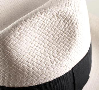 Hergestellt aus gebackenem Stroh und Kalk, wird das resultierende "Papier" fein geflochten. Es bietet bemerkenswerte Flexibilität, gute Widerstandsfähigkeit und eine weiche Textur. Geformt in die ikonische Fedora-Form, sorgt die breite Krempe sowohl für Stil als auch für Schutz vor den Sonnenstrahlen.