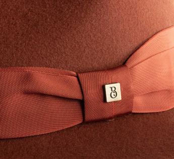 Hut 100 % französisch, entstanden aus einer Zusammenarbeit mit der Marke Aurega. Entworfen und hergestellt in unseren Werkstätten in Lyon, wird der Filz gebürstet, um eine Oberfläche zu schaffen, die Glanz und ein leicht samtiges Aussehen verleiht.