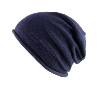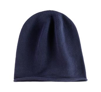 Beanie aus hochwertigem Baumwollmaterial. Der Rand kann leicht aufgerollt werden, um verschiedene Tragevarianten zu bieten. Ein Sommermodell aus feiner, weicher Baumwolle.