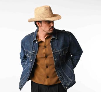 • Messingfarbene Krempe. 8 cm. Gebogen im Cowboy-Stil und von einer feinen Metallverstärkung umgeben. Ermöglicht das Formen und Halten der Kurve.