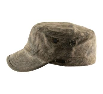 Army kappe mit Vintage-Look durch das distressed Leder. Mit einem eher groben Aussehen fügt sie sich perfekt in die Natur dieses ernsthaften und schützenden Kopfbedeckung ein. Ihr flexibles Leder ist an einigen Stellen durchlöchert, um unsere Kopfhaut besser zu belüften. Es handelt sich um ein Modell, das für den Winter konzipiert ist und daher warm und gemütlich ist.