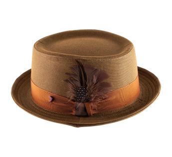 Eleganter und distingierter PorkPie Hüte aus Baumwoll-Chambray mit einer charakteristischen kurzen Krempe. Seine unter tausend erkennbaren Kopfhöhe ist mit einer wunderschönen Feder sowie einem satinierten Galon verziert. Was das Modell betrifft, so ist es in einer leichten, aber ausreichend stabilen Struktur geformt, um seine Form zu behalten. Ein Modell, das unseren Outfits eine unwiderstehliche Note verleihen wird.