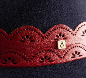 Der Galon aus Kunstleder, gearbeitet wie eine durchbrochene Spitze, verleiht eine Note von selbstbewusster Weiblichkeit. Sein intensiver Kontrast verleiht eine bohemische und rockige Energie. Das dezente Label zeichnet unsere handwerkliche Kreation aus. Dieser Hut verkörpert das perfekte Gleichgewicht zwischen Raffinesse, Originalität und Stilfreiheit.