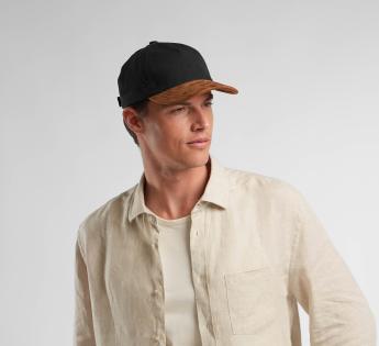 Klassische Snapback mit einer Kopfhöhe aus gestreiftem Denim-Stoff und einer Krempe aus Baumwollsued (Nachahmung eines weichen Leders, das Suede). Ein Kontrast, der ein lässiges Outfit mit seinem zeitlosen Charme aufwerten kann. Das Material ist für die Hitze geeignet und ermöglicht ein einfaches Draußen-Sein.