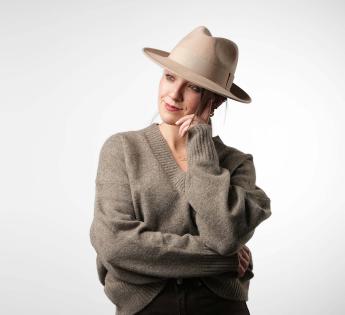 Hut mit zeitloser Eleganz, hergestellt aus 100% Wollfilz und mit einem tonalen Grosgrain verziert. Sein Schnitt passt zu allen Körperformen und bietet einen stilvollen Schutz, der unsere Outfits mühelos aufwertet. Die Kopfhöhe ist vorne und an beiden Seiten eingeschnitten und eingeklemmt für einen einfachen Halt.