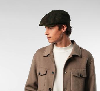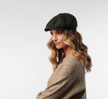 Mit seinem großzügigen Volumen und dem zentralen Knopf setzt dieser Hatteras einen Stil durch, der sowohl retro als auch selbstbewusst ist. Sein dezentes Muster in tiefen Nuancen paart sich mit einer Krempenbreite aus Cord-Samt für einen eleganten und strukturierten Kontrast.