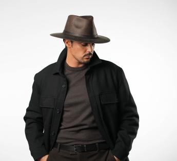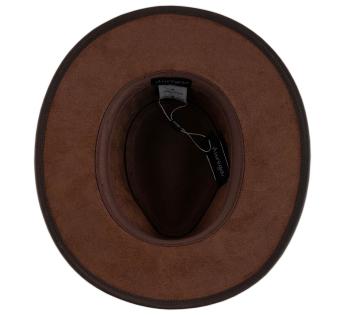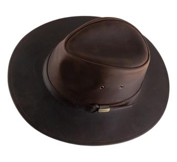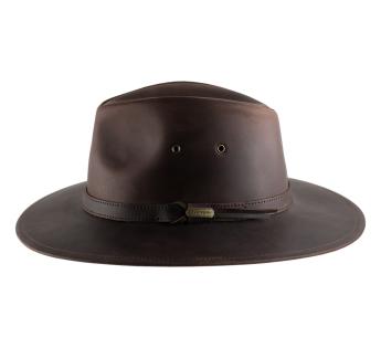 Abenteuer und Charakter stehen im Mittelpunkt mit diesem Travellerhüte aus Büffelleder von Aurega. Seine strukturierte Silhouette und das natürlich patinierte Leder offenbaren einen kühnen und zeitlosen Stil. Relativ steif, behält er eine gerade Krempe, während er eine leichte natürliche Flexibilität beibehält, die sich ohne Verformung bewegt. Seine breite Krempe bietet effektiven Schutz vor den Elementen, und seine hohe Kopfhöhe verlängert elegant die Gesichtslinie.