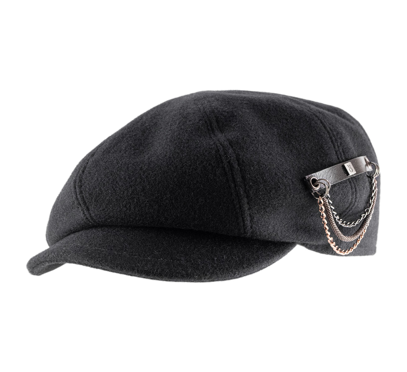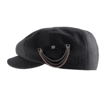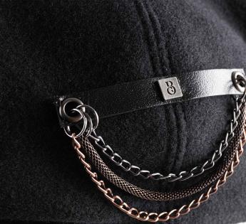 Diese cap bricht kühn mit den Codes. Ihre unkonventionelle Linie, kombiniert mit Verzierung aus Leder und Metallketten, die in unserem Atelier in Lyon hinzugefügt wurden, schafft ein perfektes Gleichgewicht zwischen Rock-Appeal und Raffinesse. Hergestellt in Italien, gewinnt sie dank dieser einzigartigen handwerklichen Arbeit an Charakter.