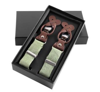 Geeignet für jede Art von Person, können diese Hosenträger entweder mit Clips oder mit Lederlaschen und Knöpfen (Knöpfe hier nicht enthalten) befestigt werden. Ein klassischer Stilvorteil, um unser Erscheinungsbild mit viel Eleganz zu verbessern.