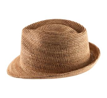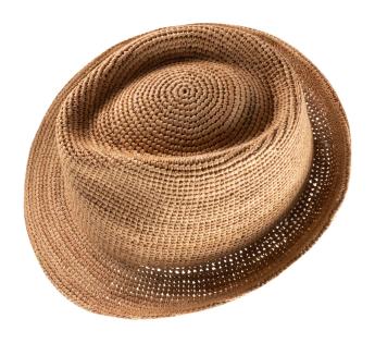 Sommerhut aus gehäkeltem Raphia. Das elegante und zeitlose Modell wird ohne Verzierung in einem schlichten Design präsentiert. Die Farbtöne des Huts sind jedoch leicht variabel. Dank einer weniger engen Webart genießen wir Sonnenschutz mit gleichzeitig guter Belüftung und Atmungsaktivität.