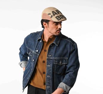 Diese duckbill Cap erzählt eine Geschichte, besitzt Struktur und eine echte Präsenz. Ihre Kopfhöhe aus recyceltem Jutegewebe, gewonnen aus Kaffeesäcken, verleiht ihr einen rauen, einzigartigen und weltoffenen Stil, der durch Leineneinsätze sanft abgerundet wird.