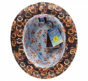 Die Sommersaison ist ideal, um Leinen auszuprobieren, ein Material, das Feuchtigkeit effektiv aufnimmt und kühl hält. Es ist zudem widerstandsfähig, fusselt nicht und verformt sich nicht. Der Stoff hat hier dunkle Karomuster in natürlicher Farbe. Er wird durch seinen Schokoladensatin für ein schickes und lässiges Ensemble hervorgehoben. Entwickelt für den "Sonnenschutz" mit der Eigenschaft UPF 40+, schützt das Modell somit vor UV-A- und UV-B-Strahlen. Darüber hinaus bietet es Männern und Frauen ein zeitloses Element, unabhängig von der Gesichtsform.