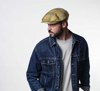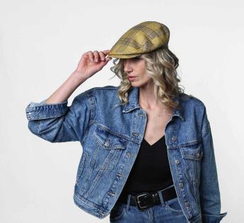 Flat cap aus einem flexiblen, widerstandsfähigen Mischgewebe. Ihr Stoff ist mit einem karierten Schottenstoff-Muster versehen.