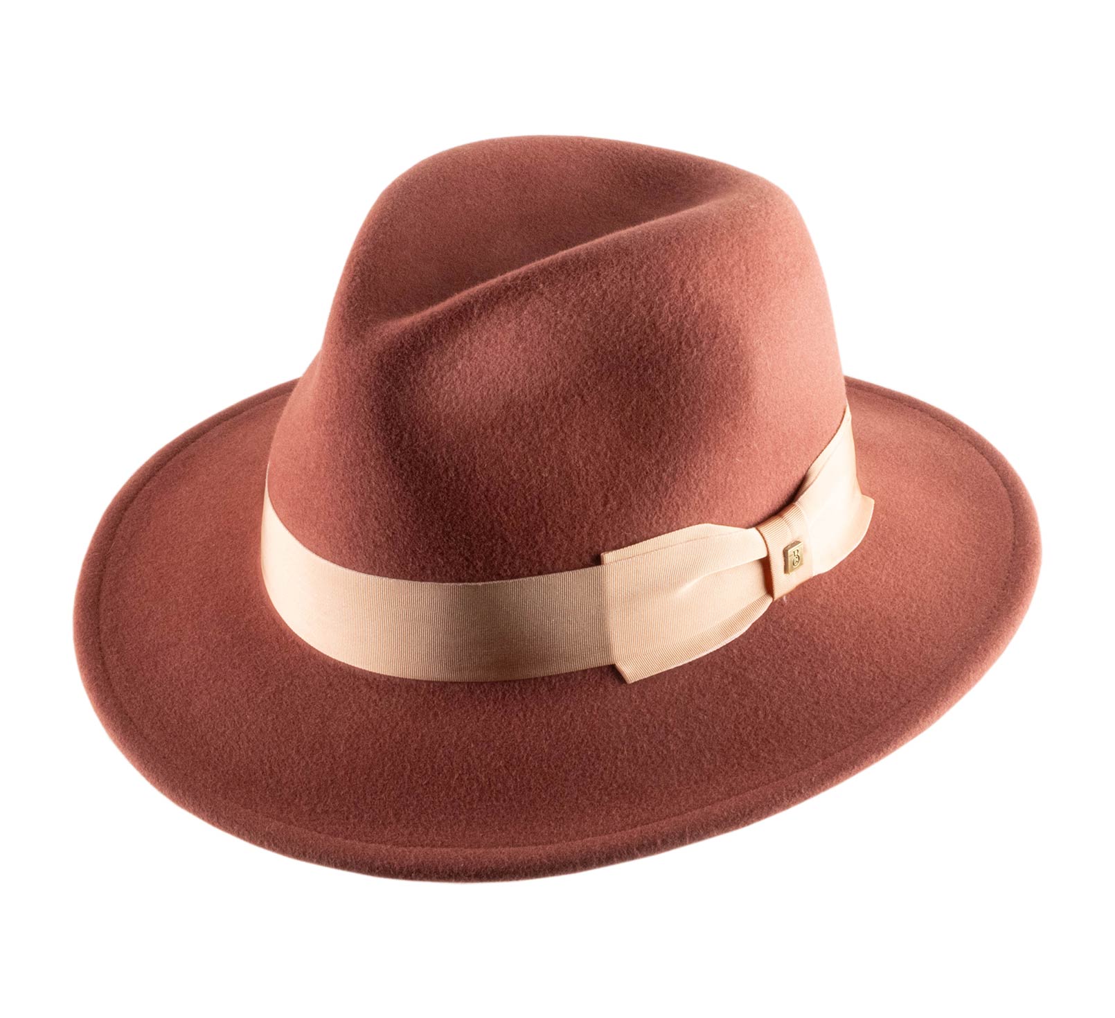 Travellerhüte 100 % französisch. Er wurde in unseren Werkstätten in Lyon aus hochwertigem, seidigem Filz gefertigt. Das Gesamtbild zeichnet sich durch Eleganz und Leichtigkeit aus, während die fächerförmige Kopfhöhe mit einem Satin-Galon verziert ist.