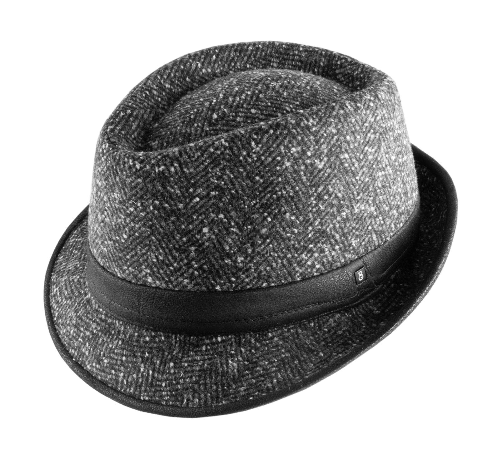 Dicker und warmer Tweed mit kleinen nach unten gebogenen Rändern vorne und nach oben gebogenen hinten, man erkennt sofort den wunderbaren Trilby. Sein zweifarbiger dunkel-heller und Zickzack-Stil erlaubt einen schlichten und raffinierten Look. Es ist höchste Zeit, dieses sehr geschätzte Modell zu übernehmen, dessen Form sich leicht an alle Gesichtszüge anpasst. Es genießt zudem italienische Qualität.
