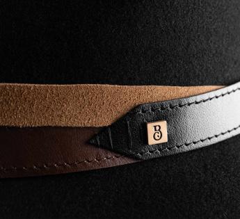 Eine Verbindung von Stil und Charakter, dieser Filzhut zeichnet sich durch seine mehrstrukturierte Lederverzierung aus. Ziernähte, Ton-in-Ton-Stickereien und ein goldenes Label veredeln diesen rohen und eleganten Mix. Wasserabweisend und crushable, begleitet er Sie mühelos, ob in der Stadt oder auf Reisen.