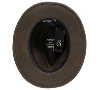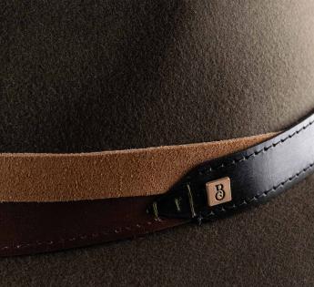Eine Verbindung von Stil und Charakter, dieser Filzhut zeichnet sich durch seine mehrstrukturierte Lederverzierung aus. Ziernähte, Ton-in-Ton-Stickereien und ein goldenes Label veredeln diesen rohen und eleganten Mix. Wasserabweisend und crushable, begleitet er Sie mühelos, ob in der Stadt oder auf Reisen.