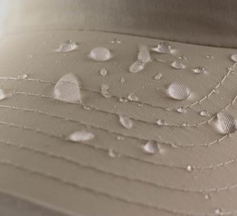 - Ultraleichte, wasserabweisende Stoffe. Recyceltes Polyamid, behandelt, damit Wasser abperlt.