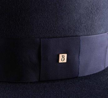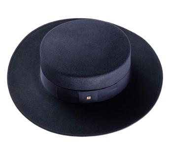 Gefertigt in Italien aus hochwertigem Wollfilz, ist er mit einem in Frankreich hergestellten Galon verziert, das Ergebnis einer Partnerschaft zwischen Handwerkern beider Länder. Dieser Dialog des Handwerks bringt ein Stück hervor, das Tradition und Kühnheit vereint, in einem Stil, der sowohl minimalistisch als auch expressiv ist. Ein Hauch von Andalusien, ein Hauch von Couture, dieser Hut überdauert die Epochen, ohne je seine Anziehungskraft zu verlieren.