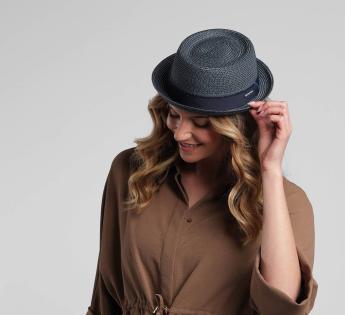 Der Porkpie ist mit diesem Exemplar bereit für den Sommer. Er begleitet die geplanten Ausflüge mit einem distinguierten Look. Sein Schnitt bleibt nie unbemerkt.