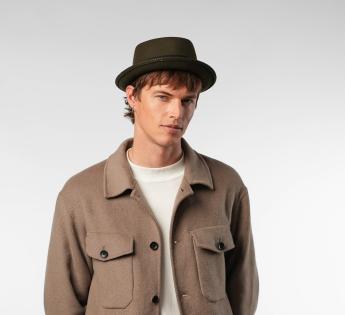 Gefertigt aus Wollfilz, bietet er Struktur, Komfort und perfekten Halt. Seine typische flache Kopfhöhe und Krempe erhoben Form verleihen einen modernen Look, während er dennoch zugänglich und leicht zu tragen bleibt. Ein Hut mit starkem Charakter, gedacht für diejenigen, die ihren Stil betonen möchten, ohne zu übertreiben.
