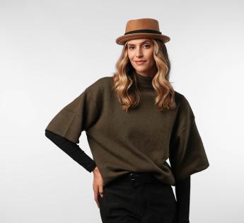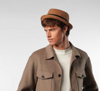 Gefertigt aus Wollfilz, bietet er Struktur, Komfort und perfekten Halt. Seine typische flache Kopfhöhe und Krempe erhoben Form verleihen einen modernen Look, während er dennoch zugänglich und leicht zu tragen bleibt. Ein Hut mit starkem Charakter, gedacht für diejenigen, die ihren Stil betonen möchten, ohne zu übertreiben.