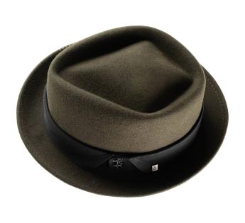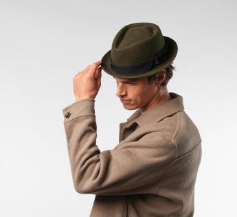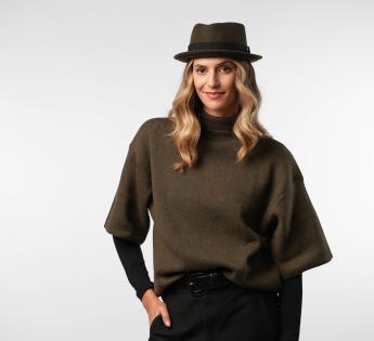 Gefertigt aus Wollfilz, bietet er Struktur, Komfort und perfekten Halt. Seine typische flache Kopfhöhe und Krempe erhoben Form verleihen einen modernen Look, während er dennoch zugänglich und leicht zu tragen bleibt. Ein Hut mit starkem Charakter, gedacht für diejenigen, die ihren Stil betonen möchten, ohne zu übertreiben.