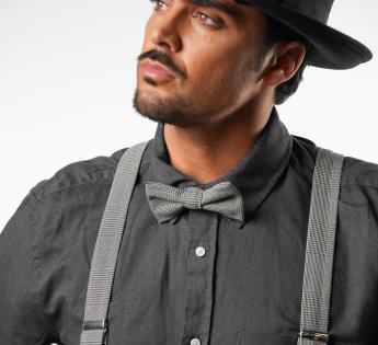 Vorgebunden und einstellbar, passt sie sich mit einem Handgriff an. Tragen Sie sie auf einem schlichten Hemd oder mit passenden Hosenträgern für einen betont dandyhaften Look. Ein Accessoire, das den Unterschied macht.
