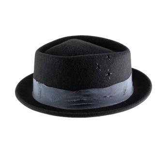 Dieser Porkpie interpretiert die Codes des Klassikers mit einem Hauch von Kühnheit neu. Gefertigt aus einem wunderschön dichten Wollfilz, offenbart er eine bewusst patinierte Optik, fast filmisch.