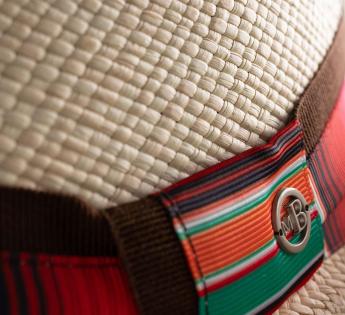 Die Verzierung wird vollständig in Frankreich, in unserem Atelier in Lyon, von unseren Modistinnen entworfen, kreiert und gefertigt. Das Schrägband in Schokoladenton verleiht dem Ganzen Wärme und strukturiert den Kontrast der bunten Streifen. Das Ergebnis: ein Hut, der sich dank seiner Farbvielfalt leicht kombinieren lässt. Er bringt ein helles Outfit zum Strahlen und verleiht einer gewagteren Silhouette Dynamik. Ein Panamahüte für den Sommer, der internationales Know-how und französische Handwerkskunst vereint.