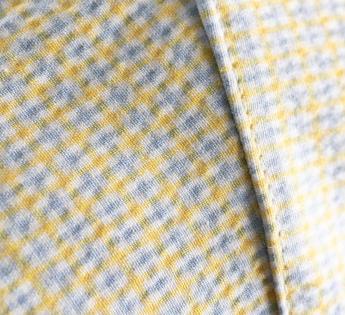 Strukturiertes Micro-Gingham-Muster, das Spiel von Mustern und Reliefs sorgt für ein zartes haptisches Gefühl und eine schöne Materialfülle.