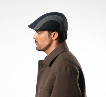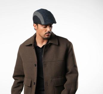 Diese Flat cap besticht durch ihr grafisches Design und den Kontrast der Materialien. Die Wollpaneele in gedämpften Tönen, die dunkle und helle Nuancen mischen, verleihen eine schöne Struktur. Ihre profilierte Form passt sich perfekt dem Kopf an und verleiht einen sportlichen, aber eleganten Look. Ein dezentes Metall-Label signiert das Modell an der Seite.