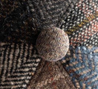 Flatcap im Patchwork-Stil mit verschiedenen Mustern. Der Schnitt ist enganliegend und kann daher leicht auf dem Kopf bleiben. Es ist ein Wintermodell mit einem dezenten Look.