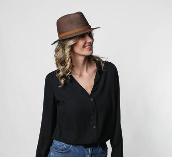 Hut aus robuster, besonders leichter und elegant geflochtener Stroh. Die Kopfhöhe in Tropfenform ist von einem dezenten Galon aus Leder umgeben, gut durchdacht. Das Modell ist ein eleganter und langlebiger Traveller, der unser Outfit auf einfache, aber raffinierte Weise aufwerten kann.