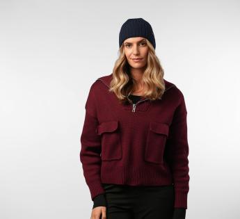 Dank ihrer dehnbaren Maschen passt sie sich leicht allen Formen an. Ein kleines, dezentes Abzeichen signiert das Stück ohne Übermaß. Schlicht, vielseitig und angenehm zu tragen, ist diese Beanie ein saisonales Must-have, so praktisch wie elegant.