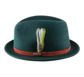 Hut aus flexiblem Filz, mit Formgedächtnis, sehr leicht und mit thermo-regulierenden Eigenschaften. Wenn das nicht der Fall ist, kommt diese Kreation wirklich der Perfektion nahe mit all diesen Funktionen. Das Accessoire wurde tatsächlich nach einem exklusiven Prozess hergestellt, um ein Ergebnis zu erzielen, das allen Geschmäckern entspricht und eine lange Lebensdauer hat. Unverzichtbar! Dieser Player Hüte hat einen jazzigen Look mit seinem kurzen, umgeschlagenen Krempenbreite, seinem feinen Band und seiner Feder. Die makellose Ausführung ermöglicht es Ihnen, überall und jederzeit einen lässigen und eleganten Look zu präsentieren.